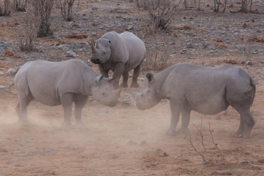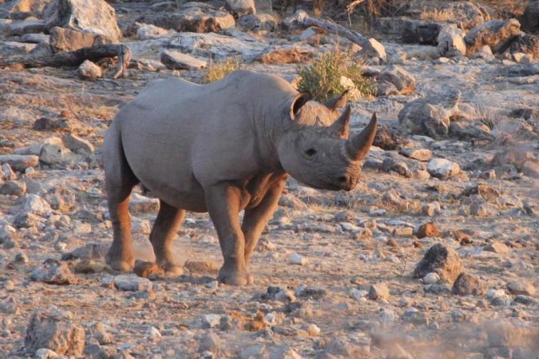 – 1 : le centre d’Etosha (Namibie) : on peut en voir en journée mais, à défaut, on est presque sur de les voir près des points d’eau (et notamment ceux des campements) à la tombée du jour. Le campement d’Halali est la meilleure option. Etosha est clairement le meilleur endroit pour bien observer des rhinocéros noirs sauvages.