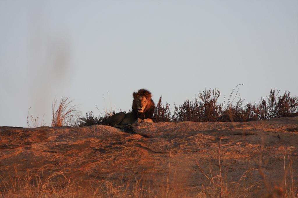 Juillet et août sont des mois agréables pour les touristes en Afrique du Sud mais ils sont froids pour beaucoup d’animaux. Ainsi, les soirs, on trouve souvent des lions sur les dalles rocheuses. Ils profitent de la chaleur du rocher.