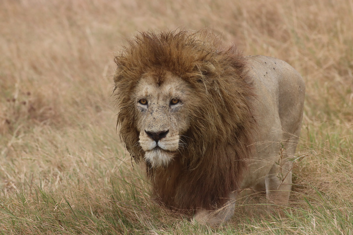 Ce lion a terminé son repas. Il va faire une petite marche pour rejoindre une zone de repos. Il s’arrête parfois pour marquer son territoire.