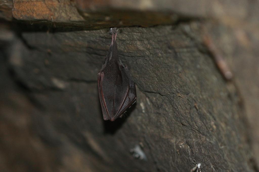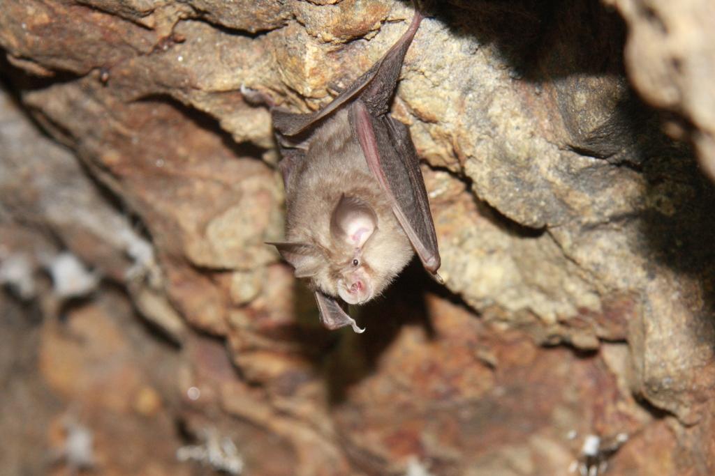 Ce petit rhinolophe hiberne sans aucun effort. S’il était dérangé, il se contracterait (il donnerait l’impression de faire une traction). On ne doit pas atteindre cette situation car le réveil nécessite une très importante dépense d’énergie, une énergie dont il a besoin pour survivre à l’hiver.