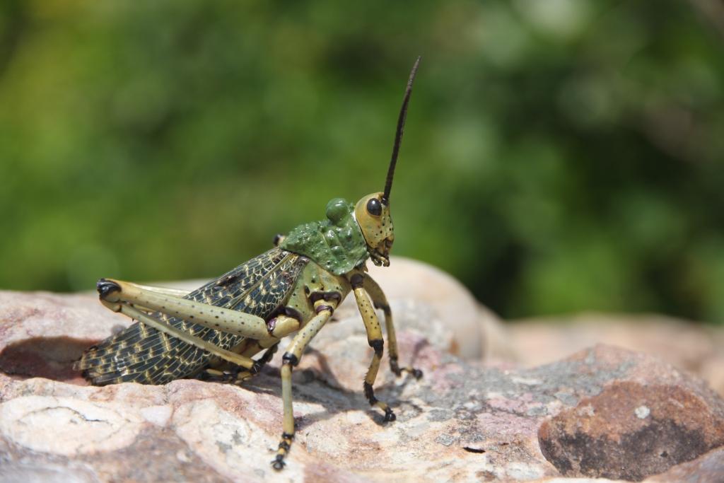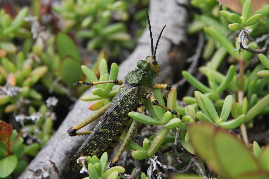 Ce gros criquet, de 7 cm de long et d’allure très lourde, ne passe pas inaperçu. Il se nourrit de plantes très toxiques.