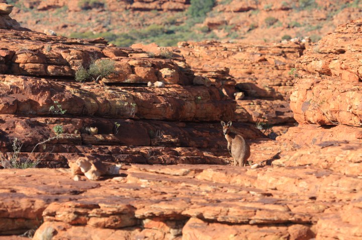 Faite la randonnée qui fait le tour de Kings Canyon tôt le matin. Si vous n’êtes pas les premiers de la journée sur le sentier, il faut faire des petites incursions pour multiplier les points de vue à droite, à gauche. Ce sont des animaux qui restent sur un territoire assez petit. Si vous en voyez un, vous pouvez tenter de le suivre discrètement.