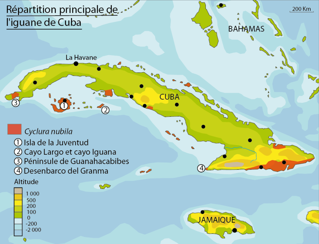 L’isla de la Juventud abrite une des plus importantes populations d’Iguane terrestre de Cuba. On en verra aussi facilement sur Cayo iguana au large de Trinidad. Si on reste sur l’île principale de Cuba, on a de fortes chances de passé à côté de cette espèce. Il y en a néanmoins dans la péninsule de Guanahacabibes (à l’ouest) dont quelques individus autour du centre des visiteurs. Il y en a également dans le parc national Desembarco del Granma…
