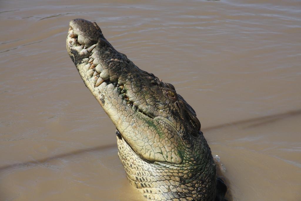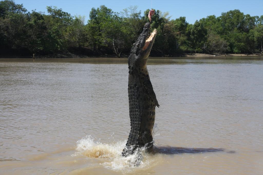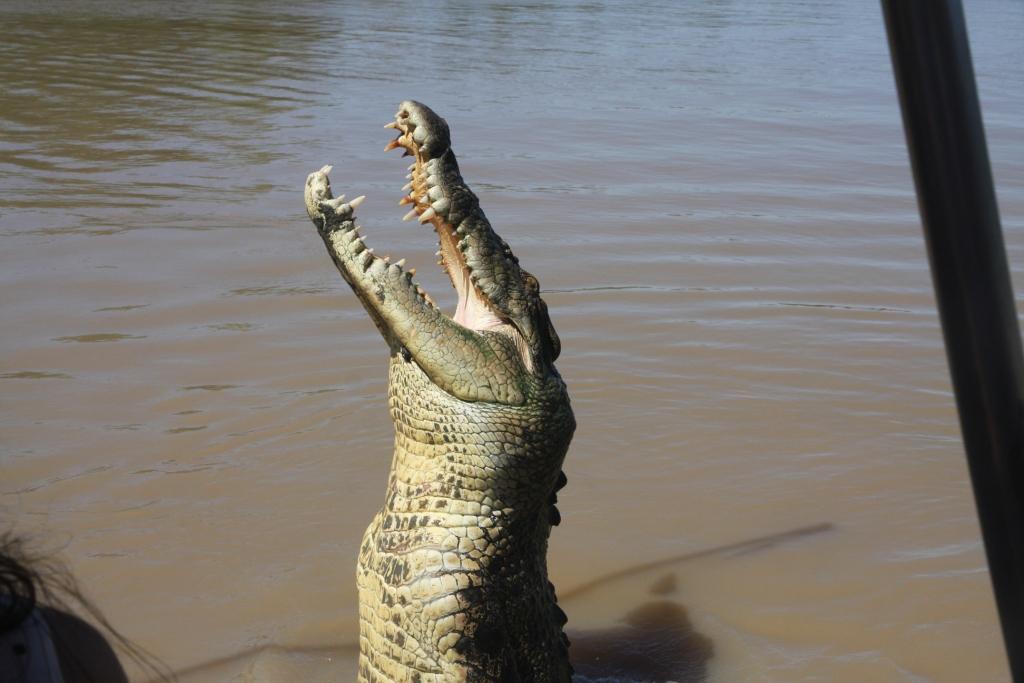 Sur l’Adelaïde River, les Australiens proposent des sorties en bateau nommées « Jumping crocodile ». Ils attirent les crocodiliens avec un morceau de viande accroché à une canne à pêche. Le crocodile s’approche, s’arrête sous l’appât et, sans élan, avec la seule puissance de la queue, il s’élève pour attraper la viande. Cette sortie me posait problème (un côté artificiel ? éthique ?). Je la recommande pourtant si vous voulez voir des crocodiliens en activité et si vous voulez bien comprendre leur fonctionnement de prédateur. C’est impressionnant !