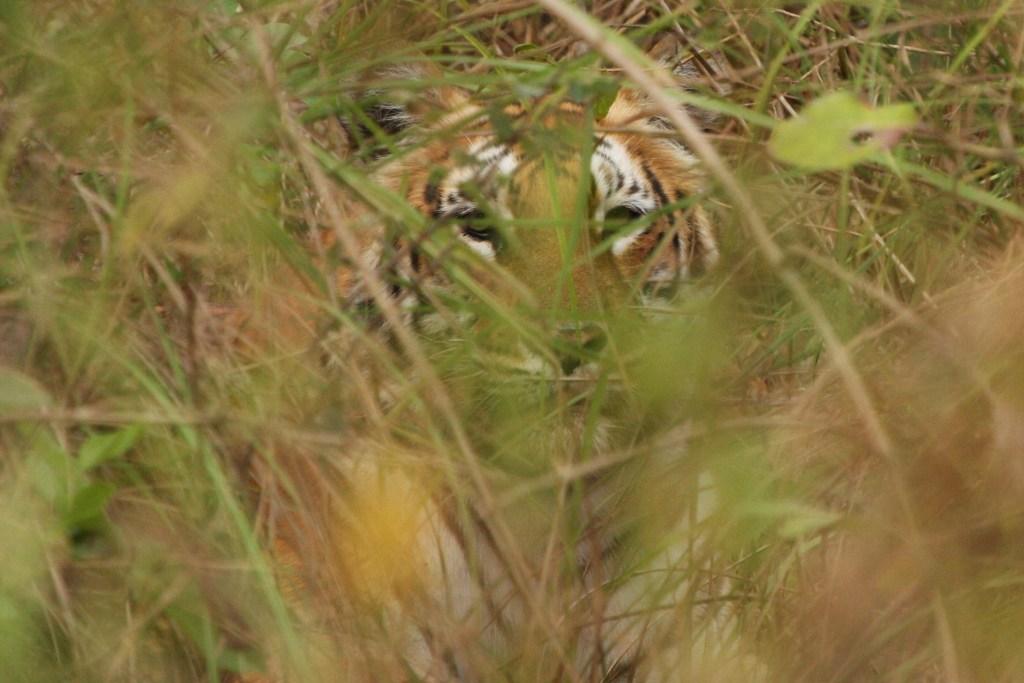 Photo 4 : Tigresse couchée dans les hautes herbes