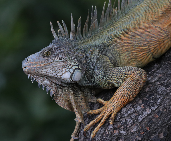 Gris, beige, orange, vert, bleu… l’iguane commun est aussi appelé iguane vert mais seul les juvéniles sont toujours verts.