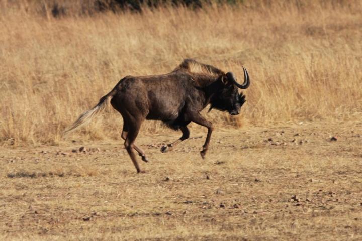 Comme le gnou bleu, le gnou noir est un animal nerveux qu’on voit parfois courir sans comprendre pourquoi.