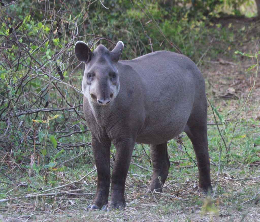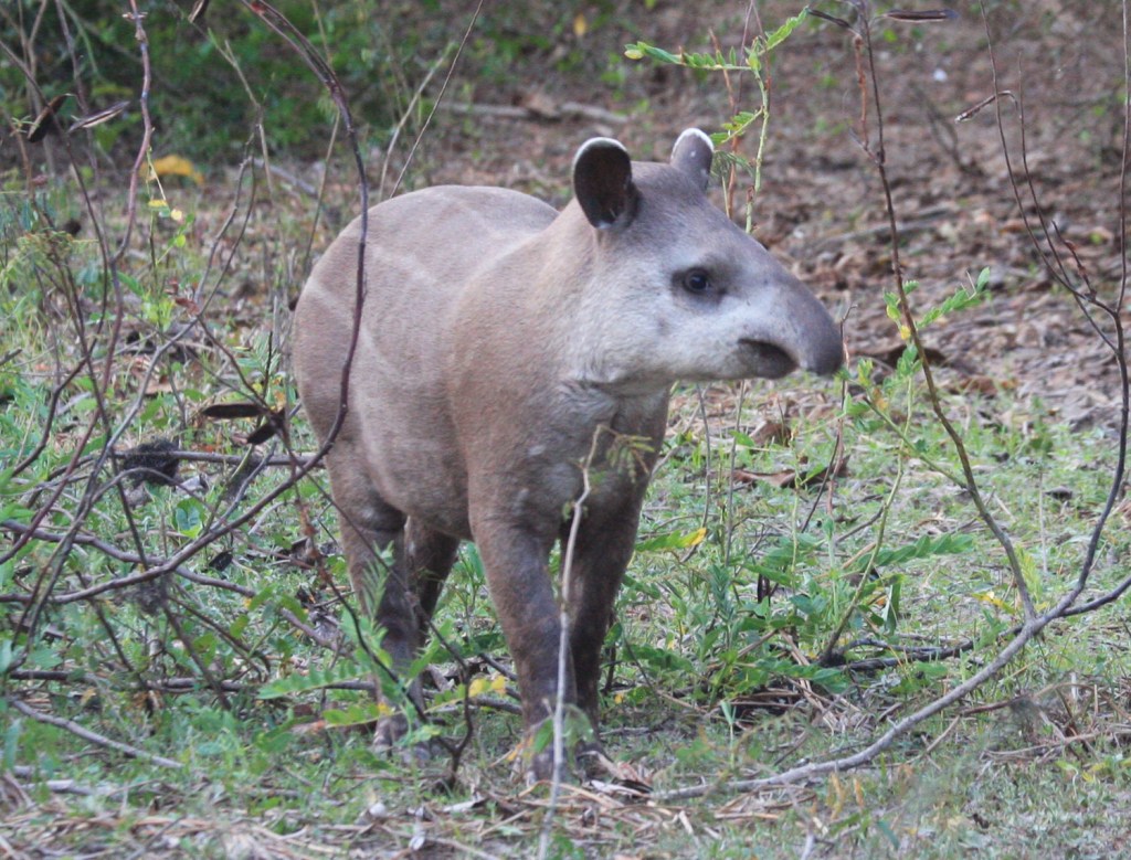 Le tapir terrestre ou tapir du Brésil est le tapir le plus commun grâce à une large répartition. Il est néanmoins difficile à voir car il est chassé et donc méfiant et discret.