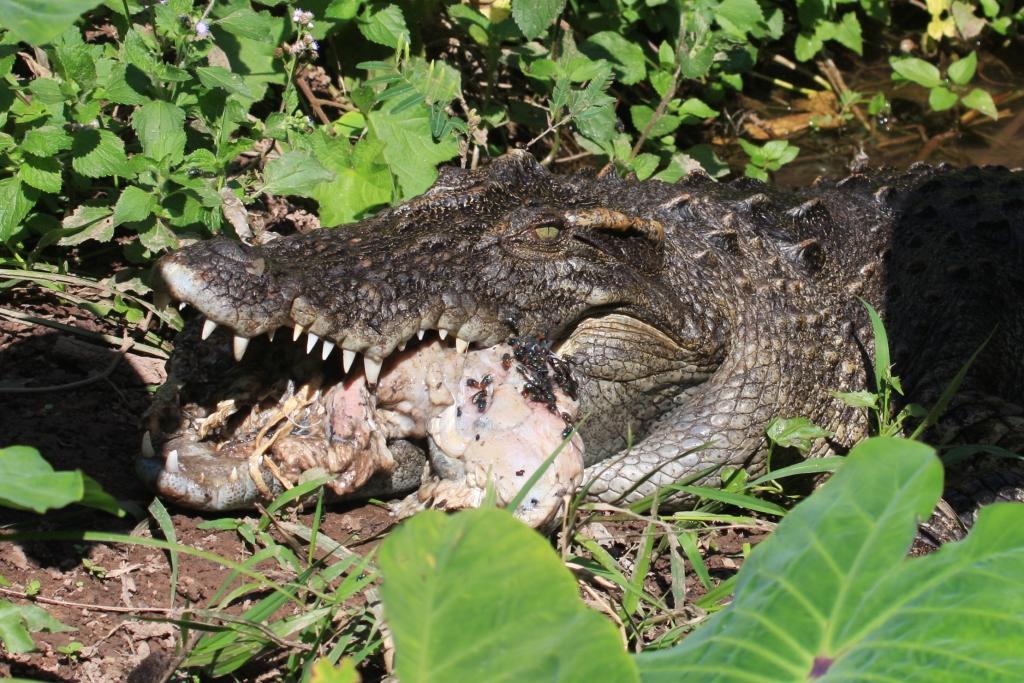 -il est à une altitude supérieure à 700 m ce qui convient bien mal à ce crocodile. Heureusement qu’il y a largement de quoi manger.
