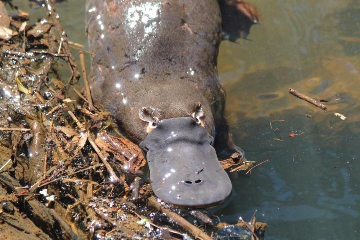 Le meilleur endroit pour le voir, est de loin l’Eungella NP (Queensland). C’est le meilleur endroit parce que l’eau de la Broken River est un peu trouble et que l’ornithorynque, qui n’aime pas la lumière, peut s’y montrer actif toute la journée. Ici, il est donc moins nocturne qu’ailleurs.