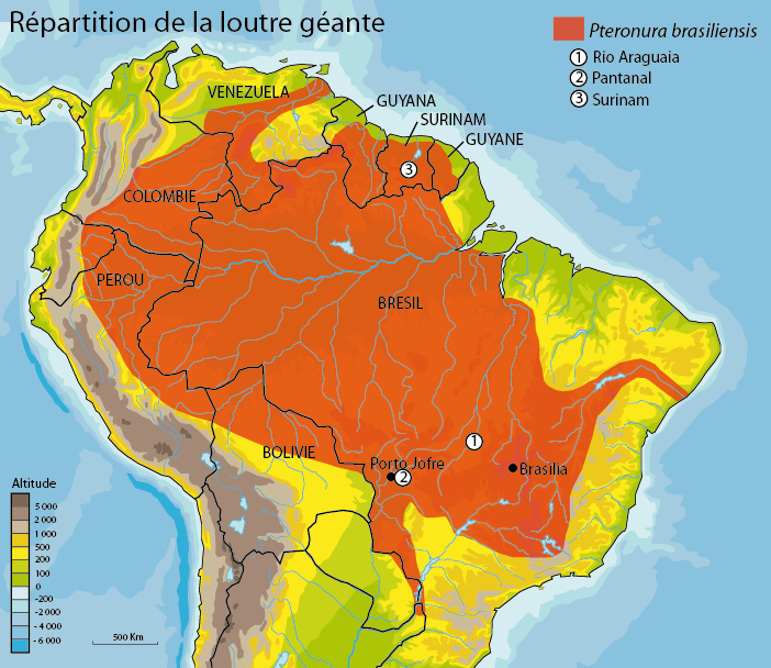 3- le Surinam : dans ce pays, la densité de loutre géante a été estimée à 1.2 animaux / km2. C’est, pour certains scientifiques, un lieu majeur pour la préservation de l’espèce.