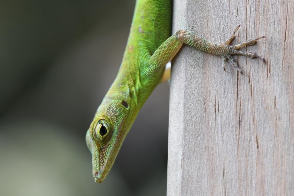 Cet anolis, comme le précédent, est sur la plate forme en bois qui sert de point d’observation sur Grand Etang.