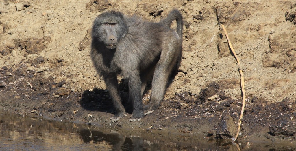 Sur les 6 espèces de babouins, le babouin chacma est le plus imposant, grand, lourd, menaçant… Il peut poser des problèmes dans les zones où il a appris à piller les touristes. C’est également un babouin bien adapté au manque d’eau. Il peut rester sans boire pendant 10 jours.
