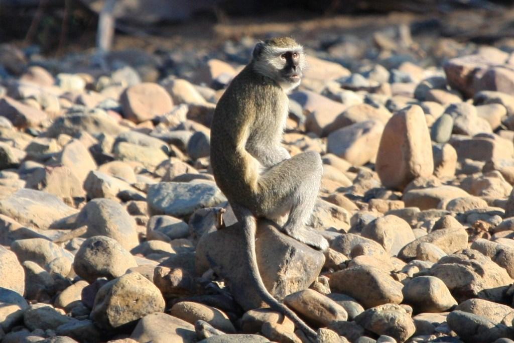 Parmi les 6 espèces de vervets ou singes verts, le vervet malbrouk est un des plus grands. Il est un peu plus méfiant que le vervet bleu, sans doute moins habitué à la proximité des touristes.
