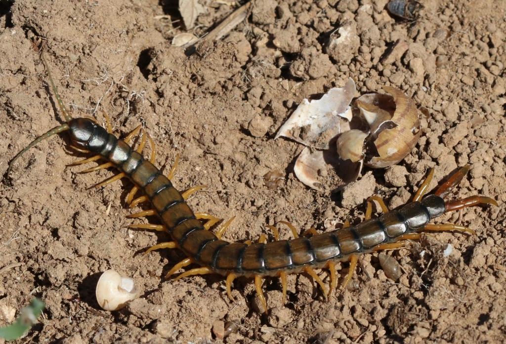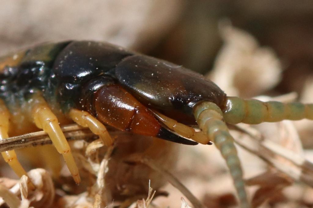 Surpris sous une pierre, cette scolopendre ne va pas rester immobile longtemps.