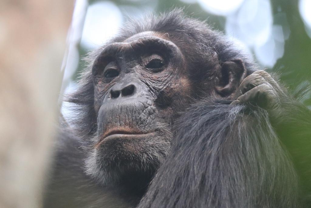 Le chimpanzé est un des animaux les plus intéressants à observer d’abord parce que chaque individu a une identité propre marquée par son physique comme par son comportement, mais aussi parce qu’il fonctionne en groupes importants avec toujours des individus actifs à observer: cris, siestes, épouillages, nourrissages, déplacements au sol, déplacements dans les arbres, bagarres…
