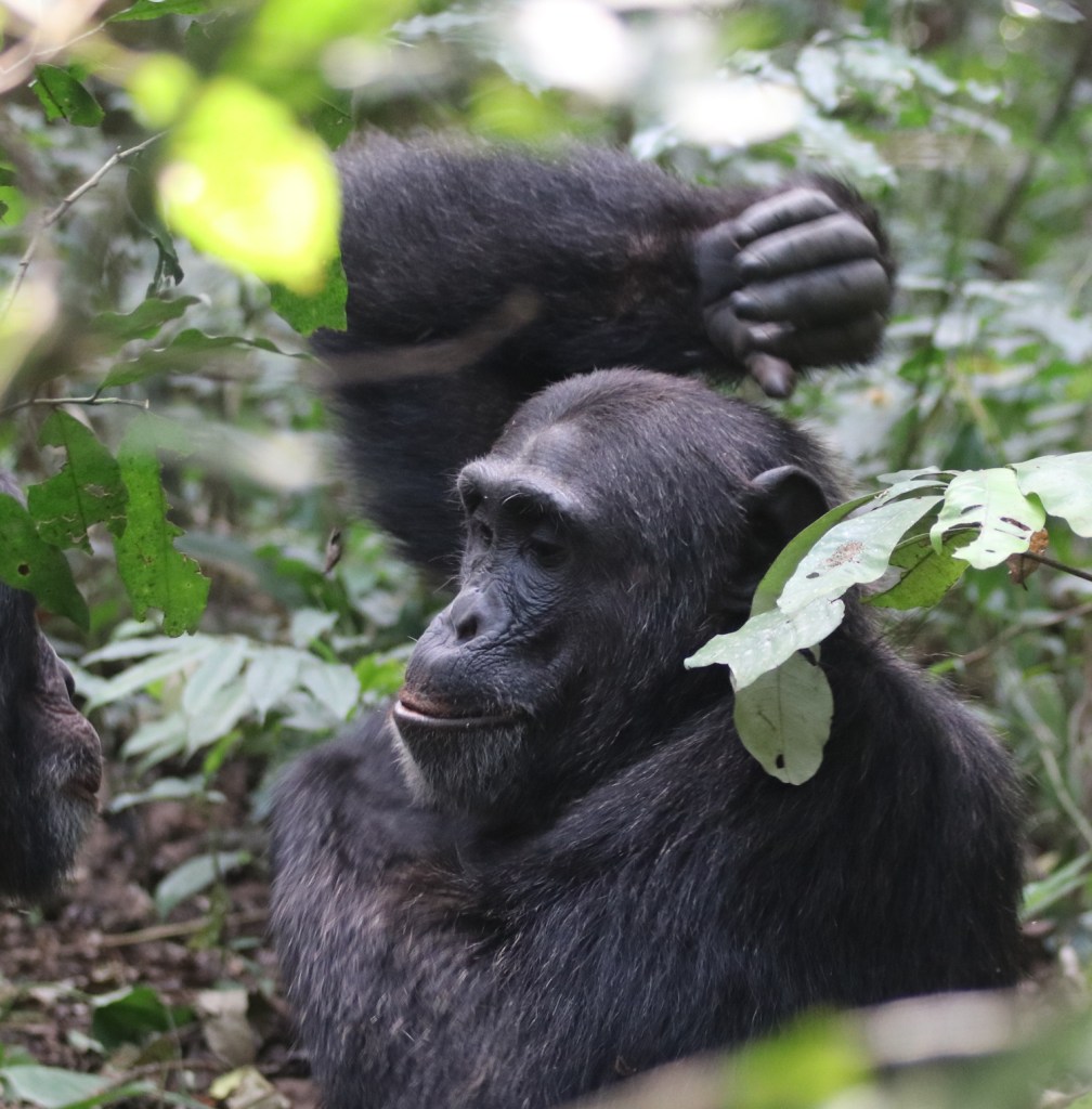 3- les chimpanzés sont légèrement plus calmes. On en profite davantage en courant moins et en photographiant plus.