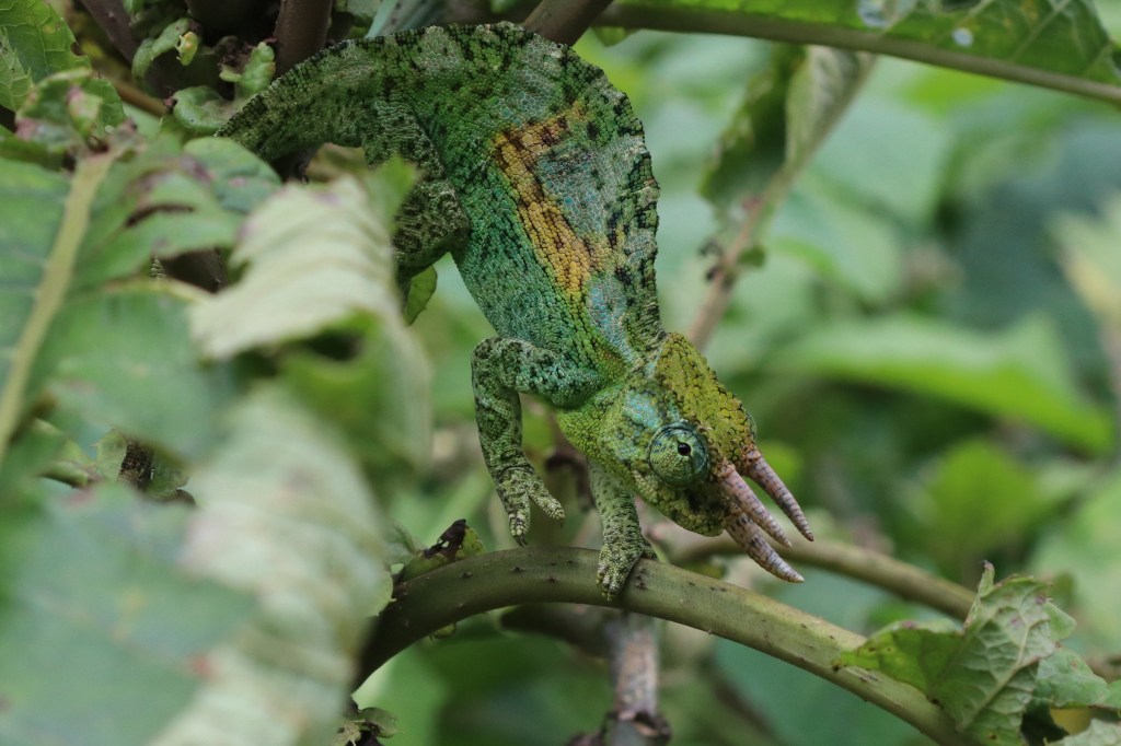La plupart des visiteurs des parcs nationaux de Mgahinga et de Bwindi viennent pour les gorilles en ignorant tout du reste de la faune locale. Les guides ne vous parleront pas spontanément des caméléons (ils ne savent d’ailleurs pas identifier l’espèce; il y a 3 espèces en Ouganda). Parfois, au retour d’une randonnée, un ranger verra un caméléon et vous le montrera. Dans le cas contraire, il y a deux solutions: