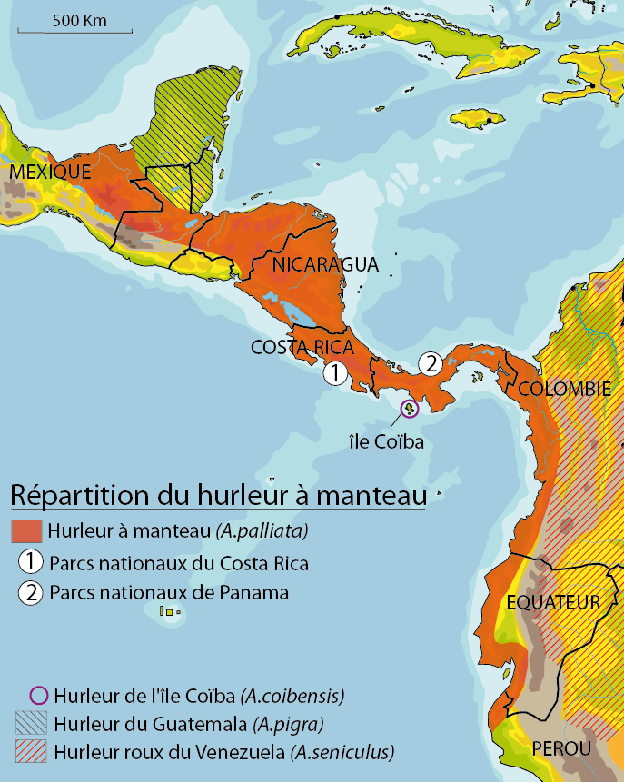 Ce singe hurleur habite l’Amérique centrale, depuis le Sud du Mexique (région de Veracruz, Oaxaca et Chiapas) jusqu’au littoral de la Colombie et de l’Equateur.