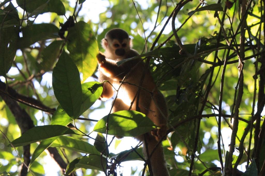 1: en forêt secondaire, c’est plus facile: plus de densité de saïmiri, moins de hauteur de canopée et moins de feuillage.