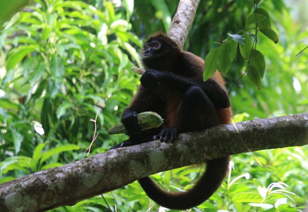 L’atèle de Geoffroy apprécie les grandes forêts de pente ou de montagne. Il ne descend presque jamais au sol et se nourrit de fruits à 70-80%.