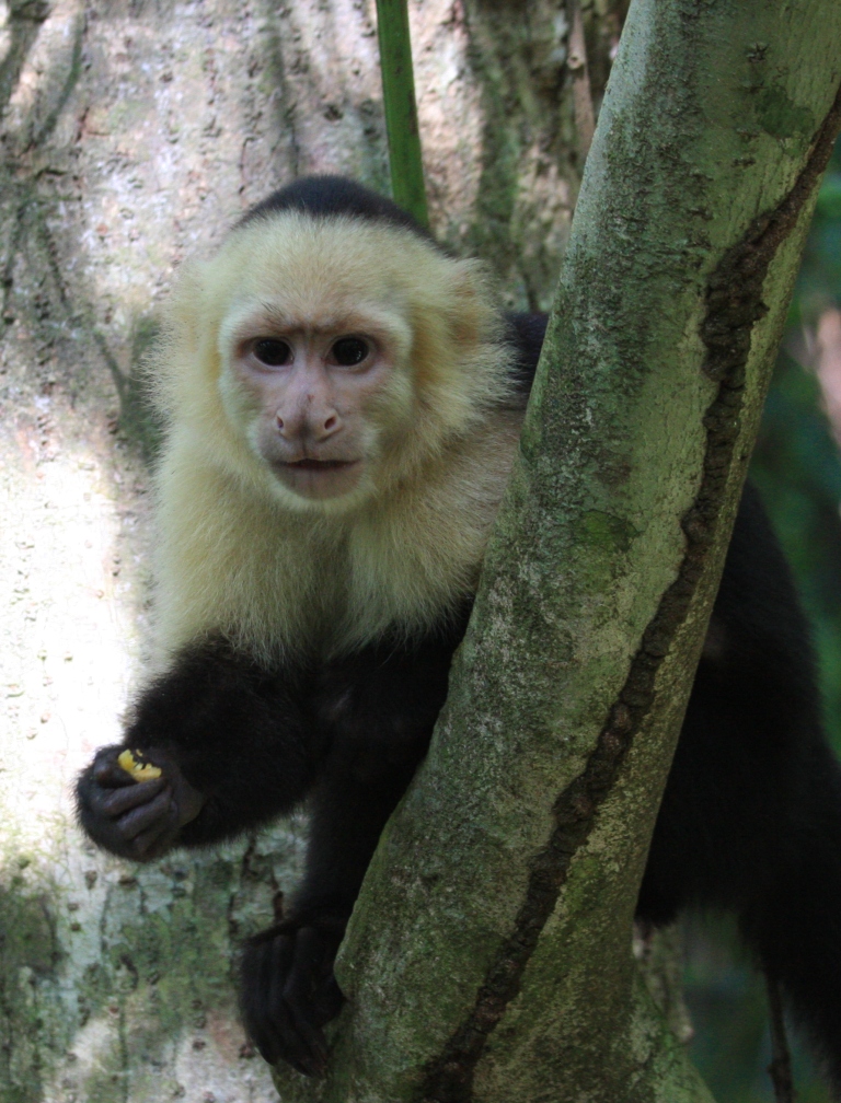 Le capucin à face blanche ou capucin moine passe pour le singe le plus intelligent du continent américain. En Afrique, on se fait dépouiller par les babouins, en Asie par les macaques et en Amérique, ça peut être lui. En réalité, il pose quand même moins de problèmes que ces derniers.