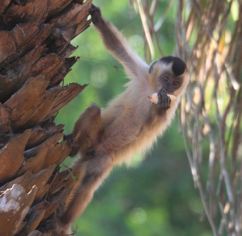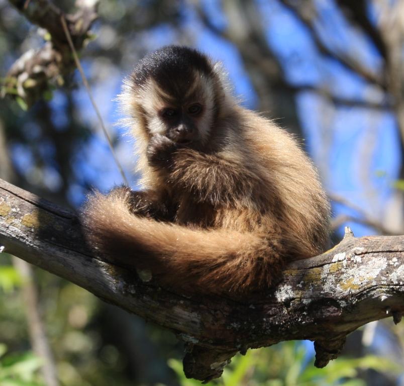 Il est très aléatoire de trouver cette espèce en forêt fermée. C’est dans les fazendas qui accueillent des touristes que l’on observe le plus facilement ce primate intelligent. Il profite ici des restes de fruits non consommés dans le restaurant.