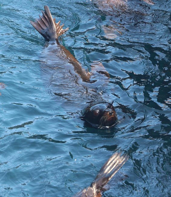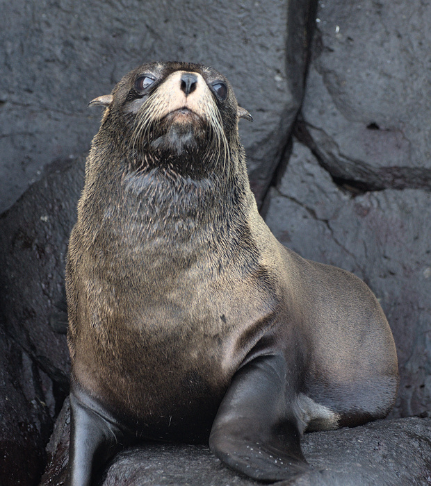– c’est la seule des 8 espèces d’otarie à fourrure à vivre dans la zone intertropicale : c’est la richesse des eaux de l’archipel qui explique cette particularité. La présence du manchot des Galapagos sous l’Equateur est lié à la même logique.