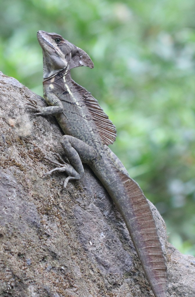 2 – Corcovado NP : les naturalistes viennent ici pour profiter de la biodiversité au sens large (tapir de Baird, les 4 primates du Costa Rica et les oiseaux). Le basilic commun est bien présent le long des cours d’eau et en 2018, un gros mâle prenait le Soleil sur les planches du dortoir de la Sirena.