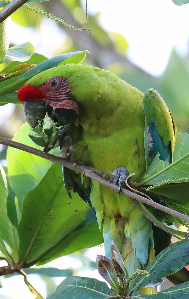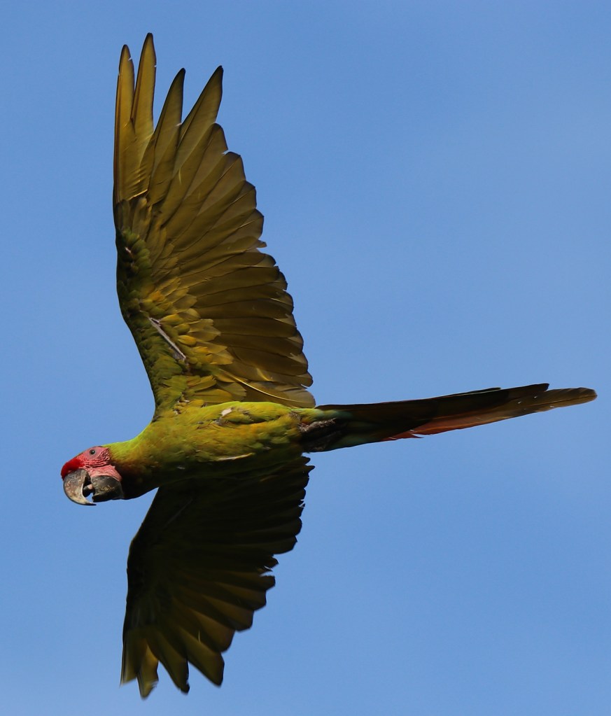 – 1 : Tortuguero (Costa Rica) : inutile ici de chercher dans le parc national. Il faut chercher et écouter dans le village surtout côté plage. On peut repérer les grands amandiers qu’ils affectionnent. Si vous êtes débutant, rejoigniez le stade de foot ou les zones dégagées à proximité. Les aras les survolent régulièrement en criant, en particulier le matin et le soir. Vous parviendrez ainsi à mémoriser les cris et à repérer les arbres qu’ils fréquentent.