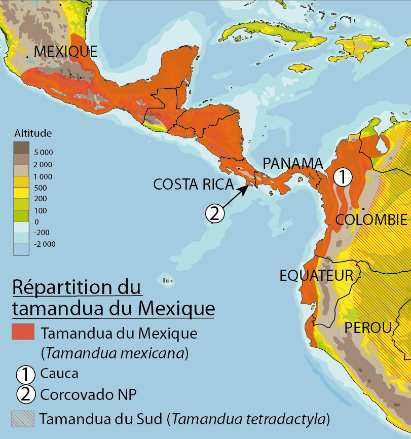 Le tamandua du Mexique est présent de la moitié Sud du Mexique jusqu’au littoral ouest de l’Amérique du Sud (du Venezuela au Pérou). La Cordillère des Andes le sépare du Tamandua du Sud.