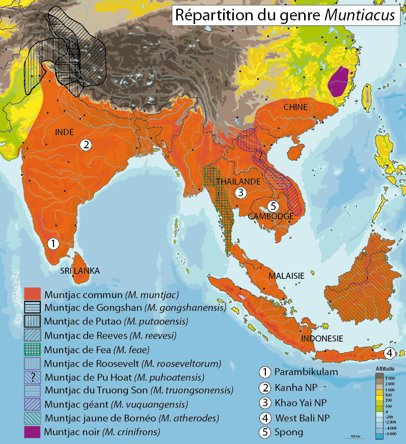 – 3 : Khao Yaï NP (Thaïlande) : dans ce parc national, on peut circuler avec sa voiture ou/et à pied sur plusieurs sentiers. Le muntjac y est assez peu farouche et assez bien étudié.