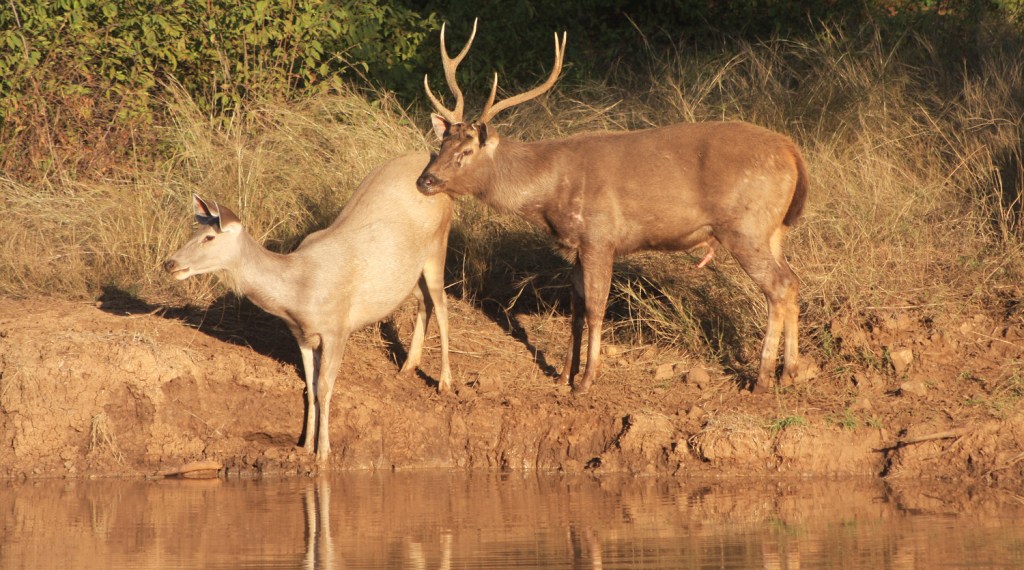 – 2 : Panna NP (Inde) : ce parc national offre de beaux paysages. les tigres y sont rares et les sambars d’autant plus nombreux. Là encore, on est obligé de circuler en jeep. Tous les autres parcs nationaux du centre de l’Inde sont très favorables. Attention à Kanha de ne pas confondre le sambar avec le barasingha.