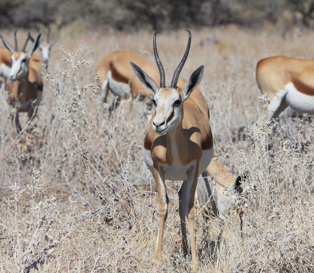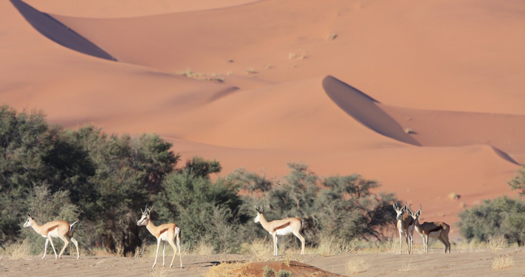 En voyageant en Namibie, on croisera aussi des springboks autour des dunes de Sossusvlei et parfois en dehors des parcs nationaux.