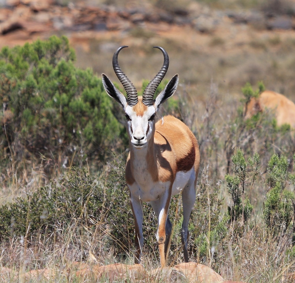 – il est visible dans des fermes d’élevage qui associent les springboks aux moutons (notamment dans le Karoo). Il est d’ailleurs possible de manger du steak de springbok (c’est possible à Captown également).