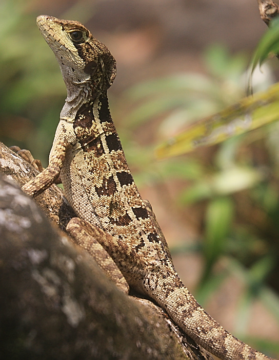 – le basilic rayé (basiliscus vittatus) : c’est le plus petit (maximum 60 cm pour les vieux mâles). Il est aussi appelé basilic brun ou basilic à bandes jaunes.
