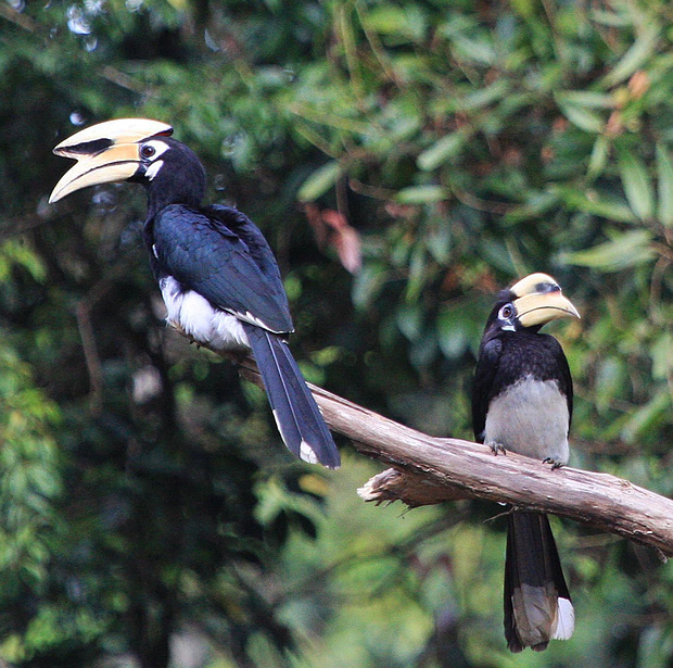 – le calao pie (A. albirostris) : c’est le plus largement réparti et le plus facile à voir des calaos dans la péninsule indochinoise. Il est de taille moyenne (55 à 60 cm).