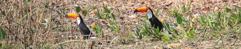 Les toucans tocos sont très arboricoles et il est rare de les voir au sol. Ici, ils profitent d’un point d’eau pour se désaltérer en fin d’après midi. Il n’y a pas de dimorphisme sexuel chez cette espèce.