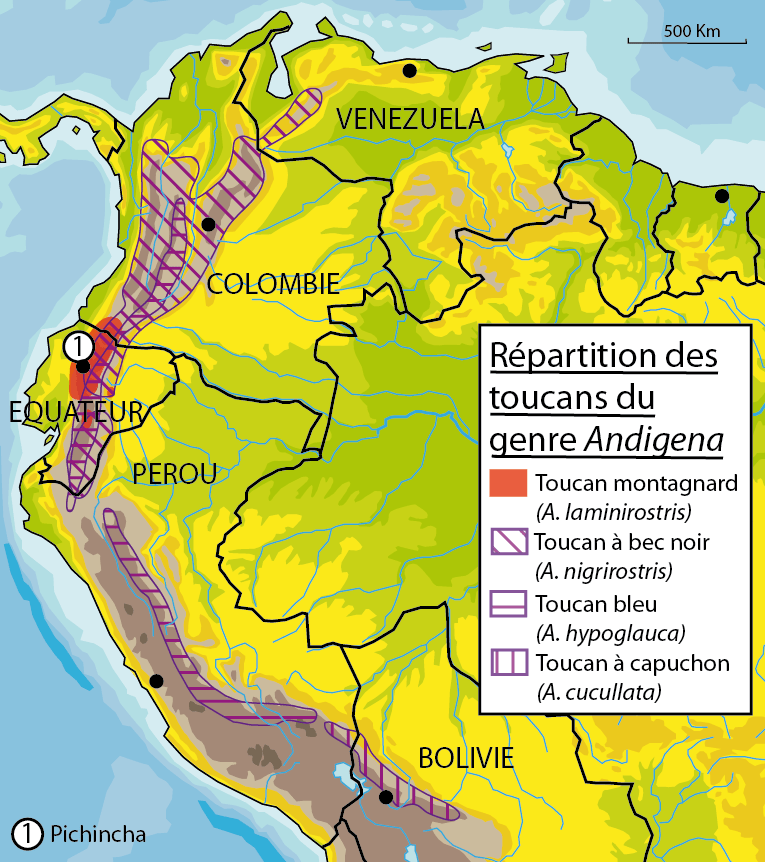 – sont tous associés aux versants des Andes : Andigena signifie d’ailleurs « genre des Andes ».