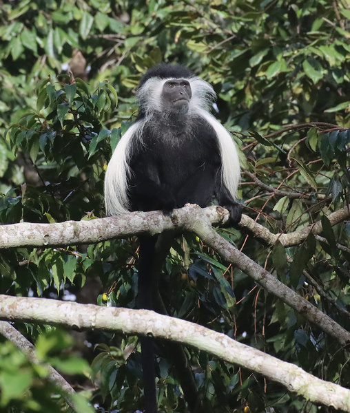 – Chercher le mouvement : les colobes d’Angola vivent généralement en groupe (2 à 20 en moyenne) et les mâles dominants font régulièrement le tour du groupe, parfois en secouant les branches volontairement pour bien signaler leur territoire. De plus, ils sont souvent associés aux singes bleus (voir l’article singe bleu) et au très rare Kipunji (Rungwecebus kipunji) dans la région du parc national de Kitulo.