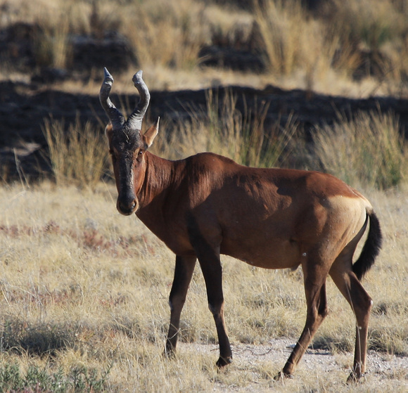 Ce bubale caama est bien différent du bubale de Coke ci-dessus. Les observateurs pourraient le confondre avec un damalisque, une espèce qui n’est pas présente à Etosha.