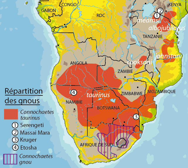 Au total, il est difficile de séparer le où ? du quand ? avec les gnous. Mais dans tous les cas, il faut le chercher dans les savanes ouvertes.