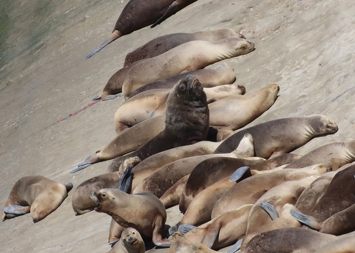 Ici, la côte est trop étroite et trop raide pour un bon site de reproduction. C’est un site de repos permanent pour 300 otaries à crinière, essentiellement des femelles et des jeunes (mais pas de bébés) accompagnés de quelques rares mâles subadultes.
