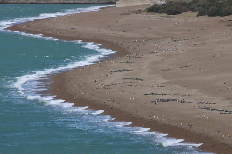 – 6 : Parque Nacional Monte Leone (Argentine) : une promenade facile de 2.6 km aller mène à une colonie de 130 000 manchots. Le sentier, peu fréquenté, permet de voir des oiseaux de tout près, mais aussi d’apprécier la taille de la colonie puisque, à l’arrivée, on domine tout le site et la plage (photo 3, ci dessous). C’est un bon plan, hors des sentiers battus et où on peut prendre tout son temps.