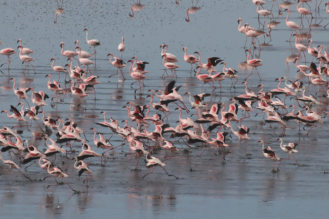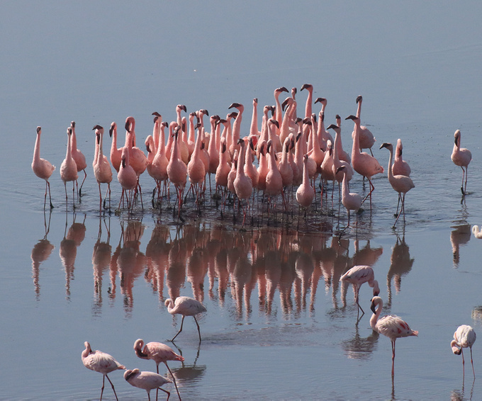 En Tanzanie, on verra quelques flamants nains dans le cratère du Ngorongoro et le long des berges du lac Eyasi.
