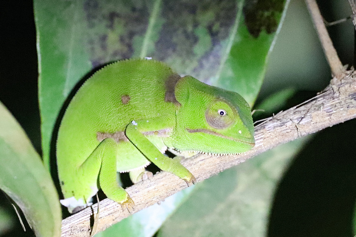Dans la réserve naturelle d’Amani, on peut demander un guide. Ils ont le rythme et le coup d’oeil qui manquent au début. Par contre, ils n’ont pas toujours un très bon éclairage. Vous trouverez également des amphibiens et des arthropodes ; Avec de la chance, un serpent, un oiseau nocturne ou un galago.