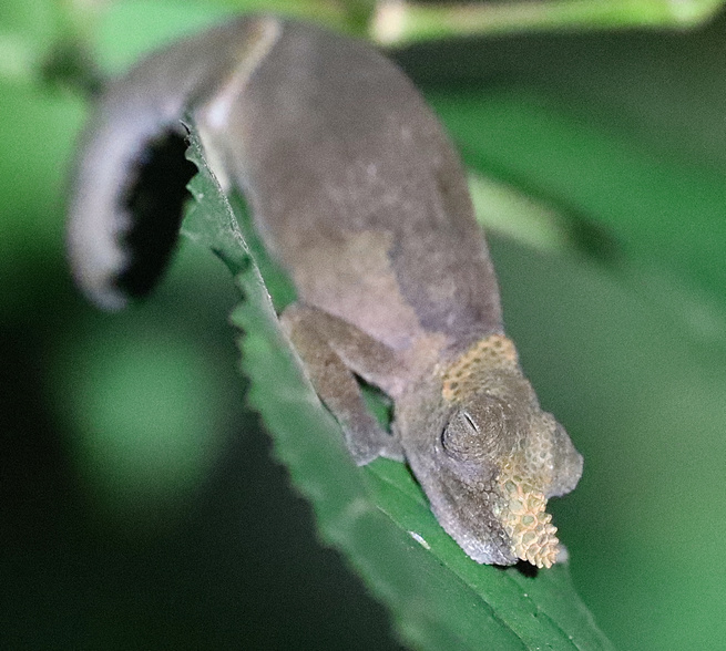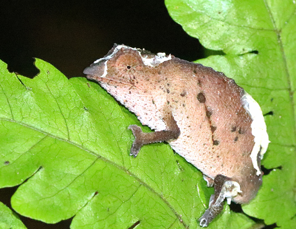 – Rhampholeon spinosus : endémique mais très difficile à trouver en raison de sa taille, de sa finesse et de son habitude à rester à plus de 3m de haut dans la canopée. Il a une corne arrondie avec de petits piquants, piquants plus prononcés chez le mâle.