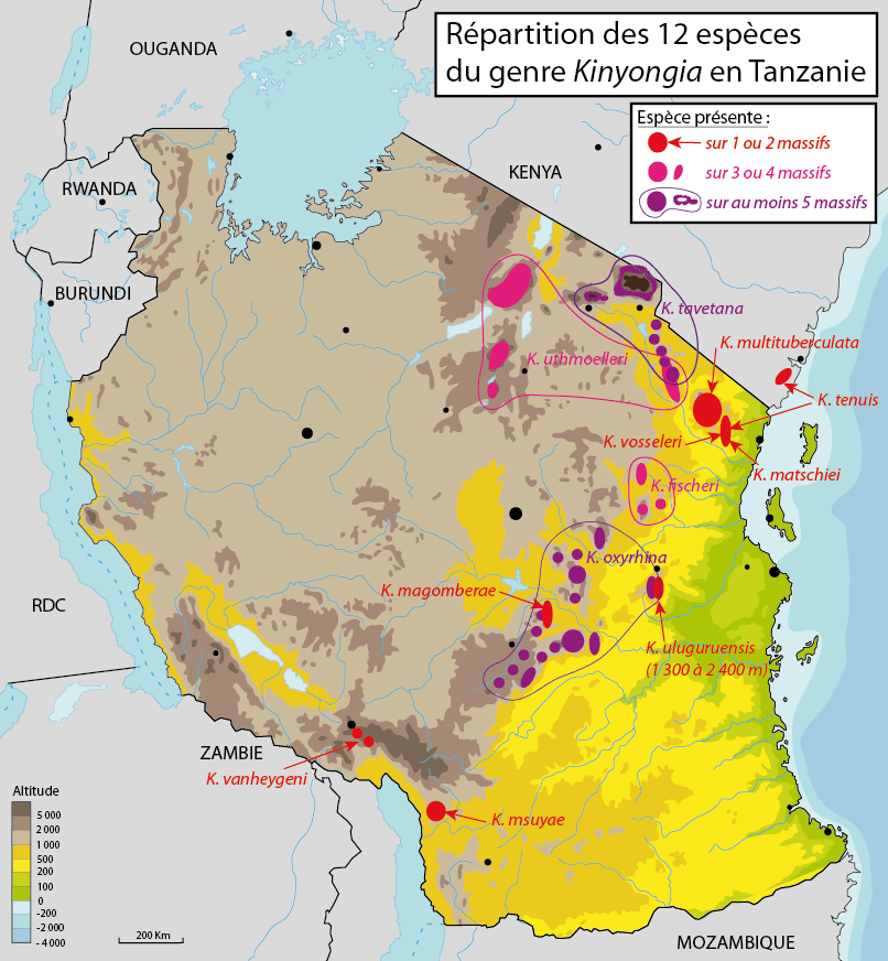 Sur ces 25 espèces, 15 sont présentes en Tanzanie et 13 endémiques.