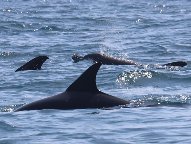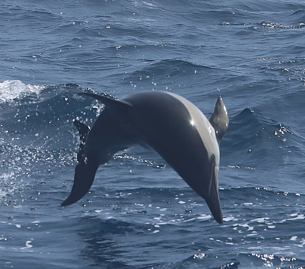– DAUPHIN COMMUN (assez difficile) : c’est le dauphin le moins fréquent dans le détroit de Gibraltar. La meilleure période pour le croiser va de septembre à novembre, période pendant laquelle ils chassent des poisson-volants.