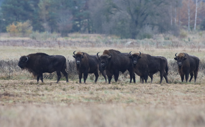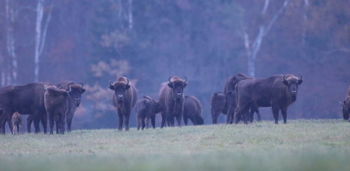 1 – la forêt de Bialowiza (Pologne) : les comptages du Parc National de Bialowiza ont recensé 726 bisons d’Europe (2025) soit 36 de plus que l’année précédente : 18% de mâles adultes (plus de 3.5 ans) ; 52 % de femelles adultes ; 17,5% de jeunes (entre 1.5 et 3.5 ans) ; 12.5% de veaux (moins de 1.5 ans). Les comptages sont effectués en hiver période pendant laquelle les bisons, et surtout les femelles, se rassemblent en troupeaux. Il est probable que les mâles échappent plus facilement au comptage.